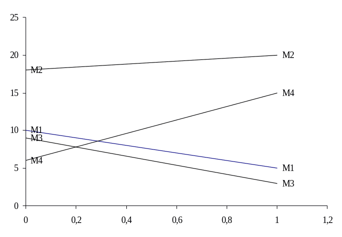 Воспользуемся графическим методом для определения смешанных стратегий.