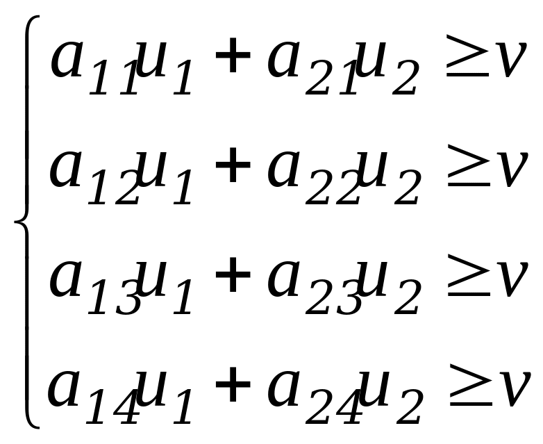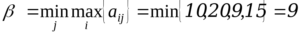Найдем нижнюю чистую цену игры. Для этого для каждого значения (i=1,2) определим минимальное значение выигрыша в зависимости от применяемых стратегий второго игрока.