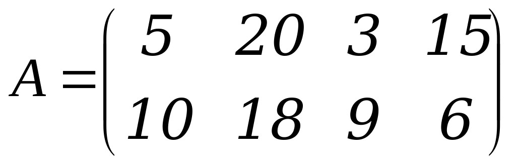 Решим матричную игру. Строки матрицы соответствуют стратегиям первого игрока, а столбцы – стратегиям второго игрока. Эти стратегии называются чистыми. Первый игрок имеет две стратегии. Второй игрок имеет четыре стратегии. Исследуем матрицу на наличие седловой точки.