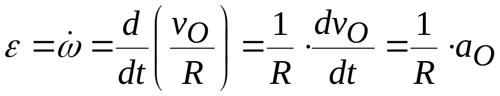 Ускорение мгновенного центра скоростей колеса, находящегося без проскальзывания на неподвижной поверхности, направлено к его центру О и имеет модуль