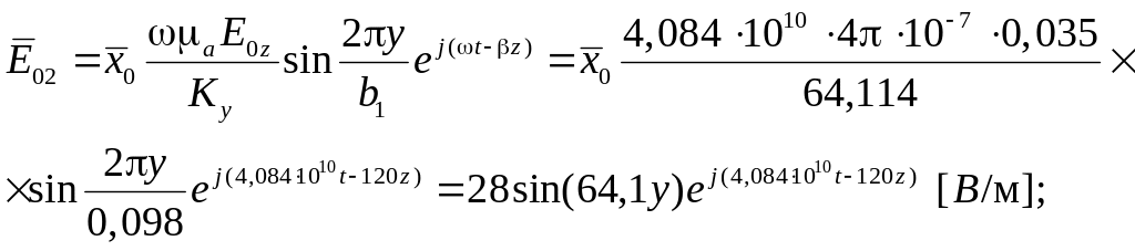 Підставивши числові значення величин у формули (3.2) і (3.3), запишемо вирази для комплексних амплітуд векторів напруженості електричного і магнітного полів.