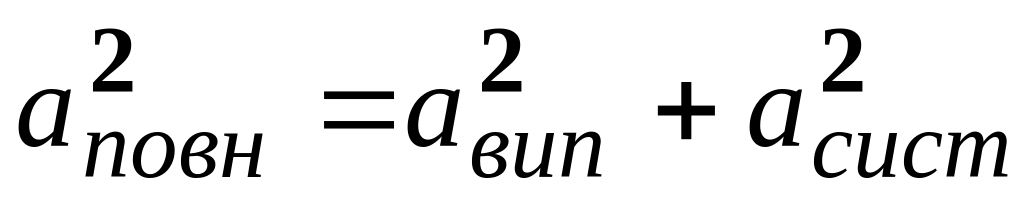 В реальних дослідах присутні як систематичні так і випадкові похибки. Сумарна похибка знаходиться за формулою: