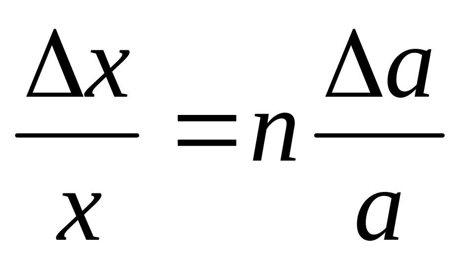 Обчислення відносної похибки ведеться по правилу диференціювання натурального логарифма функції: