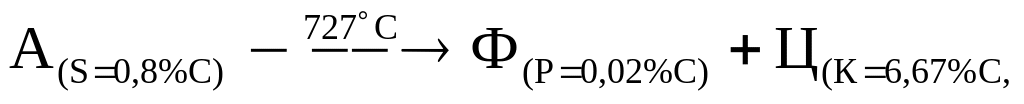 Перлит (П) – механическая смесь (эвтектоидная) феррита и цементита. Перлит содержит 0,8% углерода и образуется при t = 727С в результате распада аустенита по эвтектоидной реакции