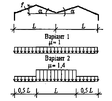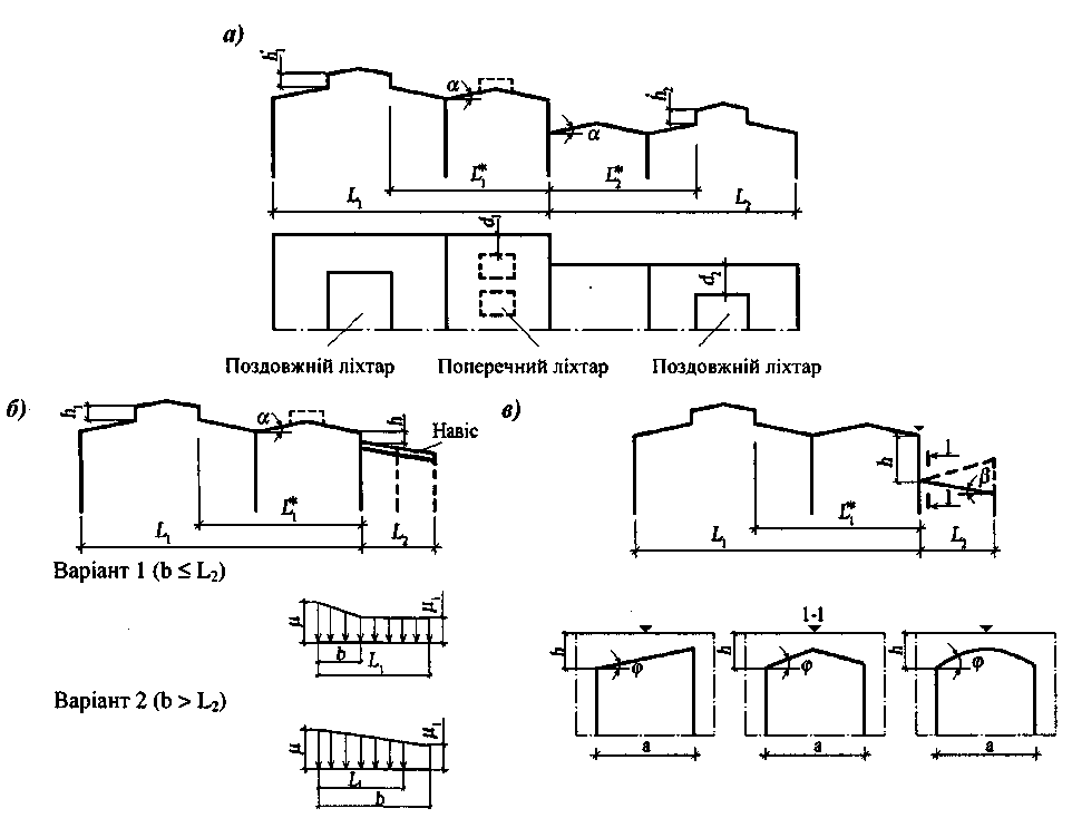 - •8.1.4. Схеми снігових навантажень і коефіцієнти (з додатку ж дбн [1])