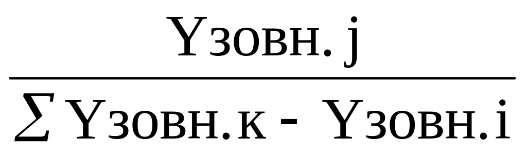 Зовнішнє навантаження Yзовн.АТСi розподіляється між РАТС пропорційно долі зовнішніх навантажень цих станцій в загальному зовнішньому навантаженні інших станцій, крім «своєї», а саме, навантаження від РАТСi до РАТСj визначається як :
