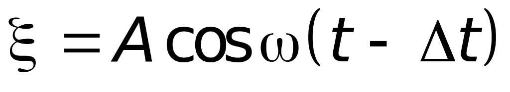 Колебание в точке М, отстоящей от источника на расстоянии х, совершается по закону