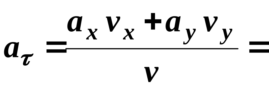 Знаючи компоненти швидкості та прискорення, обчислимо тангенціальне та нормальне прискорення за формулами:
