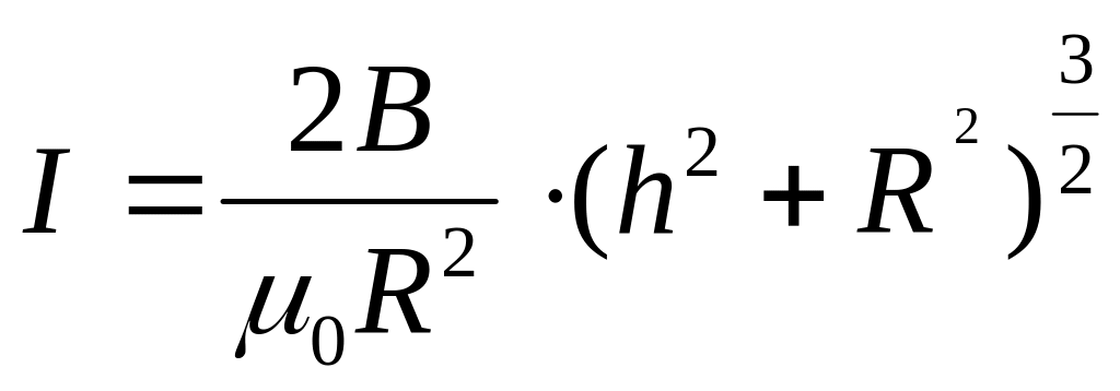 Индукция магнитного поля на оси кругового тока I на расстоянии h от центра кольца радиуса R