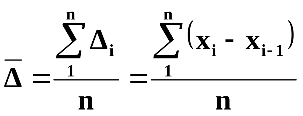 Середній абсолютний приріст розраховується як середня арифметична приросту з ланцюгових абсолютних приростів: