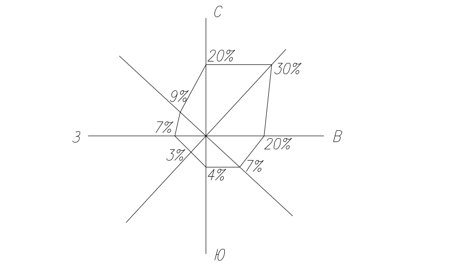 «Роза ветров» отражает усреднённое направление и повторяемость ветров по 8 основным направлениям стрелки компаса. Исходя из «РЗ» жилые районы следует располагать с подветренной стороны по отношению к промышленному предприятию. В этом случае приземные концентрации вредных веществ будут минимальными.