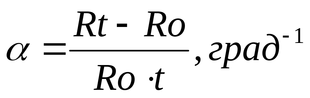 Величину , характеризующую изменение электросопротивления металлов при изменении температуры, называют температурным коэффициентом сопротивления. Если Rt электрическое сопротивление при некоторой температуре t, a Rо электрическое сопротивление при 0°С, то температурный коэффициент сопротивления можно определить по формуле