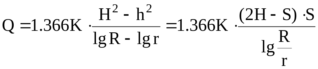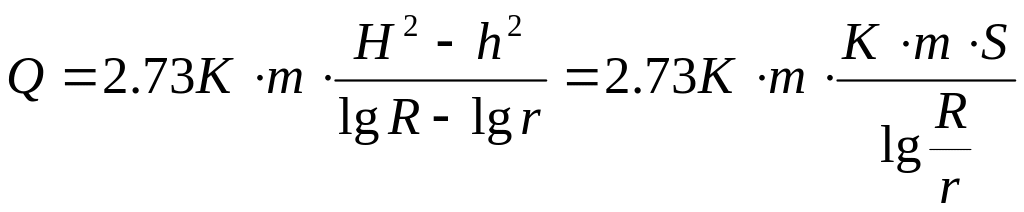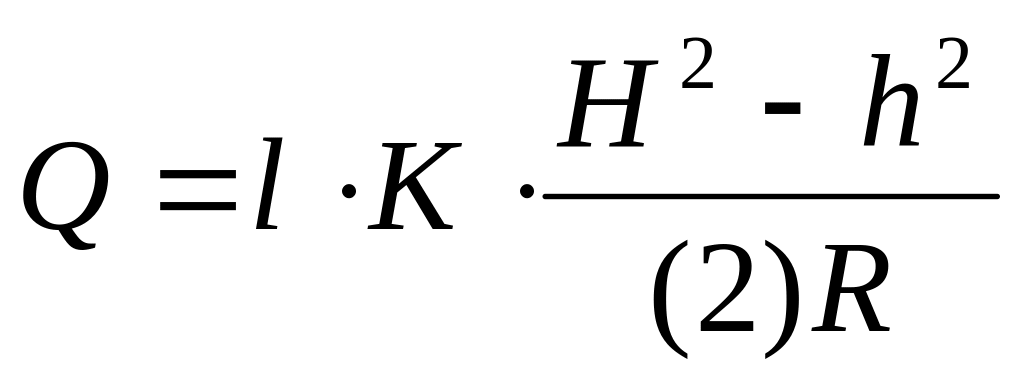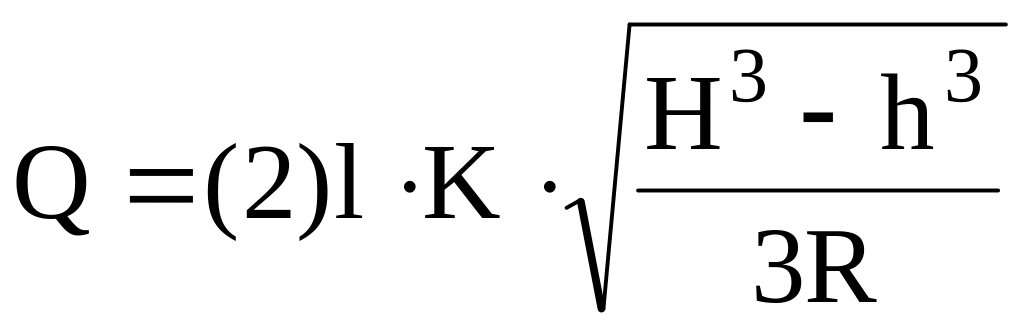 Розрахунок ведуть за відомими формулами для колодязя чи траншеї. Розрахункова формула вибирається в залежності від виду руху підземних вод (ламінарний, турбулентний), від їх напірності, а також від відношення сторін а : в прямокутного в плані котловану, де а – довжина, а в – ширина прямокутника. Якщо це співвідношення менше 10, котлован прирівнюється до великого колодязя, якщо більше 10 то до траншеї.