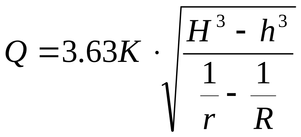 Радіус колодязя замінюється приведеним радіусом котловану (радіус