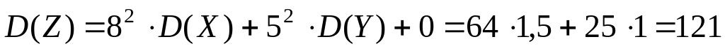 4. Дисперсія алгебраїчної суми скінченного числа незалежних випадкових величин дорівнює сумі їх дисперсій: