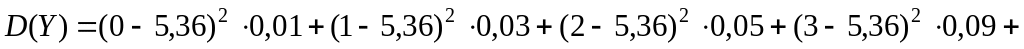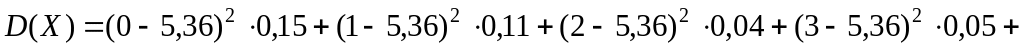 Зауваження. Цю властивість досить часто використовують для обчислення дисперсії, оскільки вона дає спрощення розрахунків в порівнянні з основною формулою (1.10), якщо значення випадкової величини – цілі. А математичне сподівання – нецілі числа.