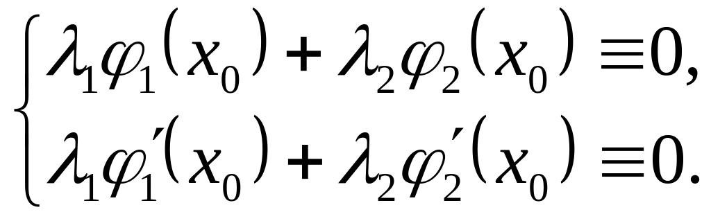 Для випадку тільки двох (але не більше) функцій теорему мо-жна довести ще простіше. Дійсно, відношення цих лінійно залежних функцій тотожно дорівнює сталій на . Нехай, наприклад,