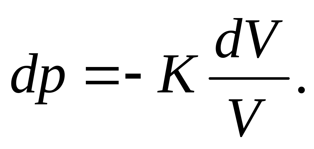 Газы обладают способностью сопротивляться изменению его объема, т.е. газам присуща объемная упругость, проявляющаяся в изменении давления газа р при изменении его объема V. По закону Гука для объемной деформации, изменение давления газа dp при малом изменении его объема dV прямо пропорционально относительной объемной деформации: