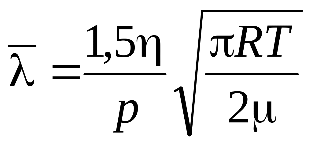где k – постоянная Больцмана, k = 1,3810-23 Дж/К; n – концентрация; – эффективный диаметр молекулы, т.е. минимальное расстояние, на которое сближаются при столкновении центры двух молекул; Т – абсолютная температура; р – давление.
