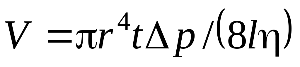 Коэффициент вязкости можно найти по закону Пуазейля, определяющему объем газа V, протекающего через капилляр при ламинарном течении: