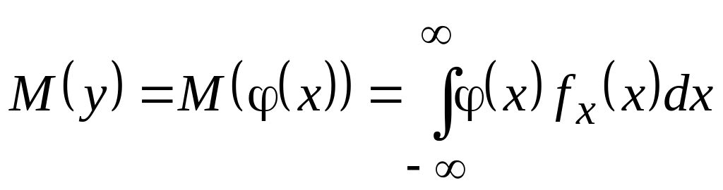 Пусть теперь X – непрерывная величина, заданная функцией плотности вероятности fx(x). Как и для дискретного случая, характеристики функции Y = (X) можно вычислять непосредственно, не составляя функций распределения для Y:
