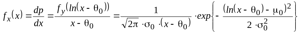 Функцию плотности вероятности (дифференциальную функцию) логнормального распределения получим из следующих соображений. Пусть fу(y) – дифференциальная функция нормального закона для y = ln (х – 0):