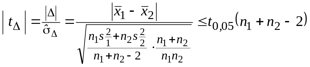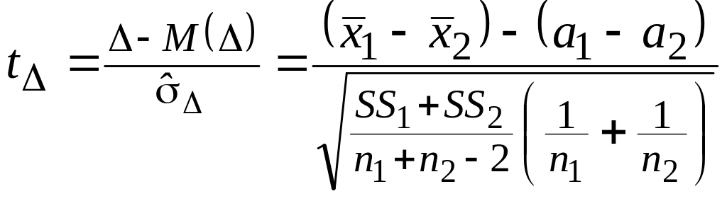 Последнее предположение о равенстве дисперсий совокупностей можно проверить по критерию Фишера, который будет рассмотрен позже.