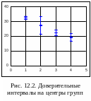 Значимые разности, для которых t > t0,05 , выделены в таблице, откуда видно, что 1-я группа значимо отличается от 3-й и 4-й, 2-я группа значимо отличается от 4-й. Выводам этим явно не хватает наглядности. Трудно представить себе общую картину, особенно при сравнении большого количества групп (например, для 10 групп будет уже 45 сравнений).