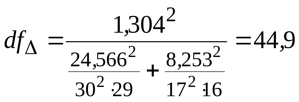 Все-равно получилась обычная сумма ЧСС: df = (n3 + n4 – 2) = 45.