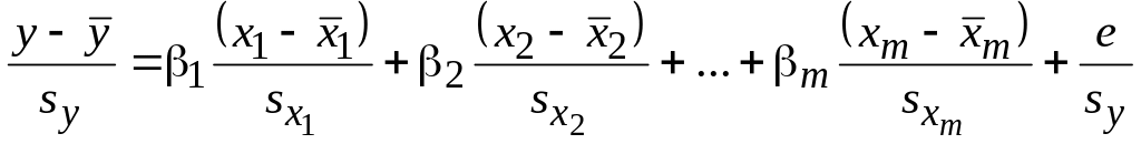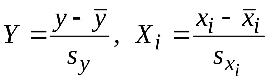 Традиционно все формулы многомерного линейного регрессионного анализа записывают в стандартизованних переменных: