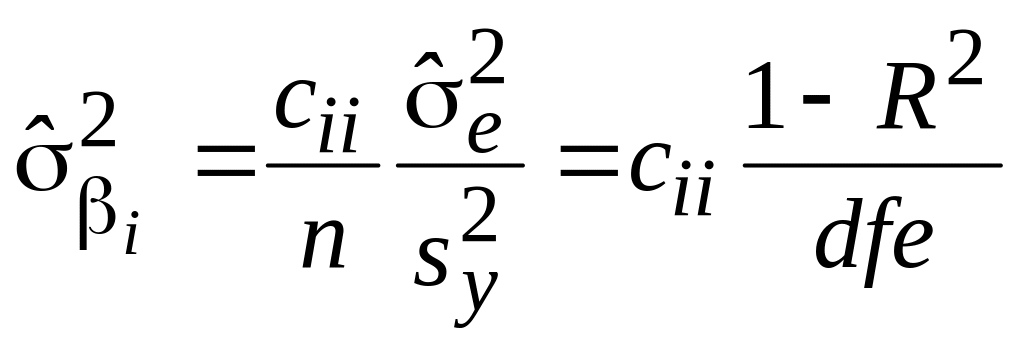 - •Вывод формул для дисперсий коэффициентов регрессии и расчетных значений