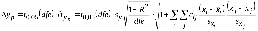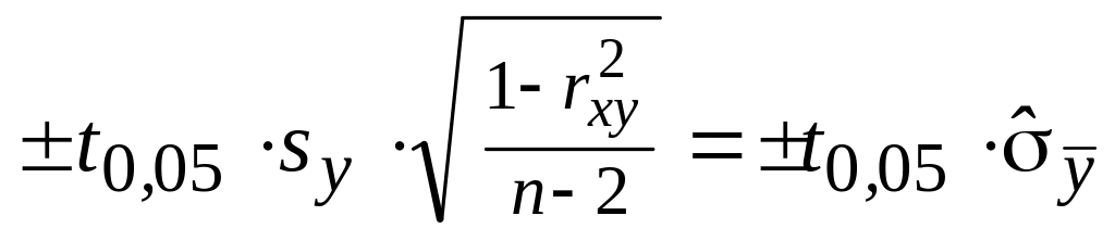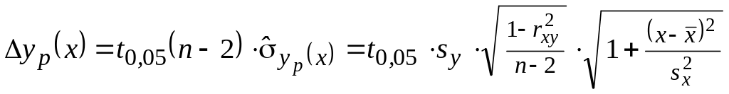 Доверительный интервал yp(x) yp(x) с гарантией 95% накрывает неизвестное нам математическое ожидание M(y | x). Границы этих интервалов для каждого расчетного значения образуют доверительную полосу вокруг линии регрессии (полосу неопределенности). Любые кривые, графики которых целиком размещаются в полосе неопределенности, представляют собой множество равноправных конкурирующих моделей – опытных данных не достаточно, чтобы сделать обоснованный выбор между ними.