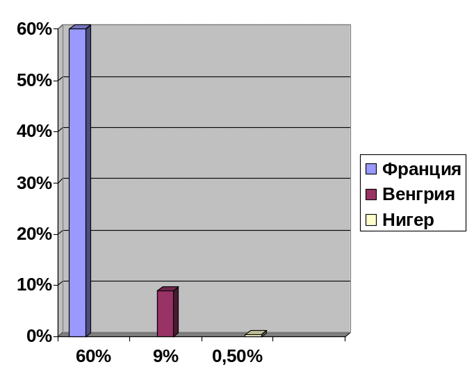 Процент людей, имеющих собственный телефон в разных странах в конце ХХ века.