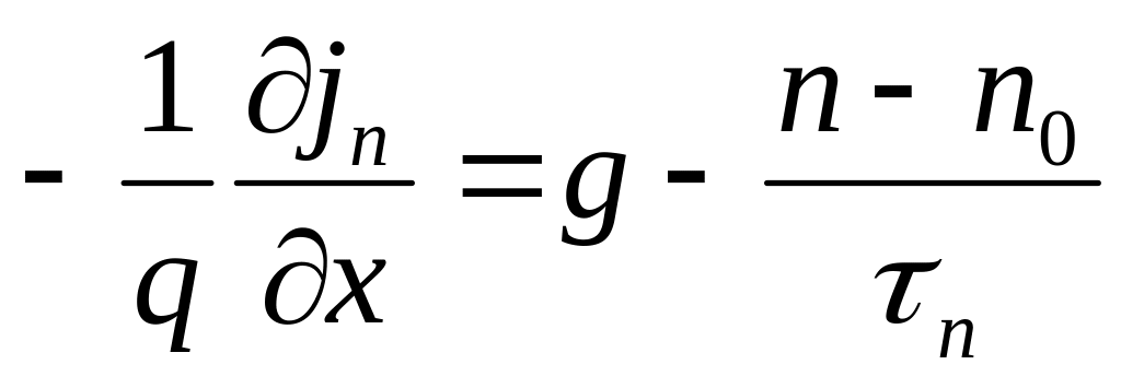 для полупроводников n- и p-типа, соответственно. Здесь n-n0=∆n и р-р0=∆р – избыточные (неравновесные) концентрации носителей заряда; g – скорость генерации носителей заряда под действием внешних факторов, например света; τn и τp – время жизни избыточных носителей заряда.