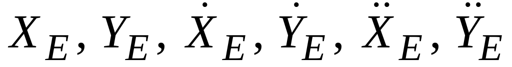 координаты, проекции векторов скоростей и ускорений точки Е, принадлежащей направляющей ползуна:
