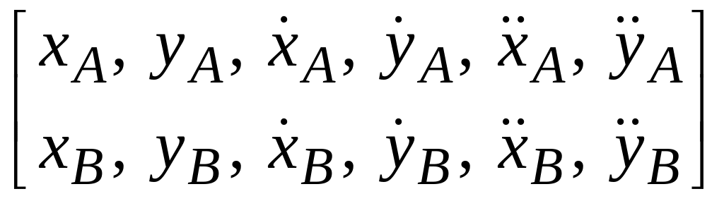 координаты, проекции векторов скоростей и ускорений кинематической пары А, которой группа присоединяется к механизму:
