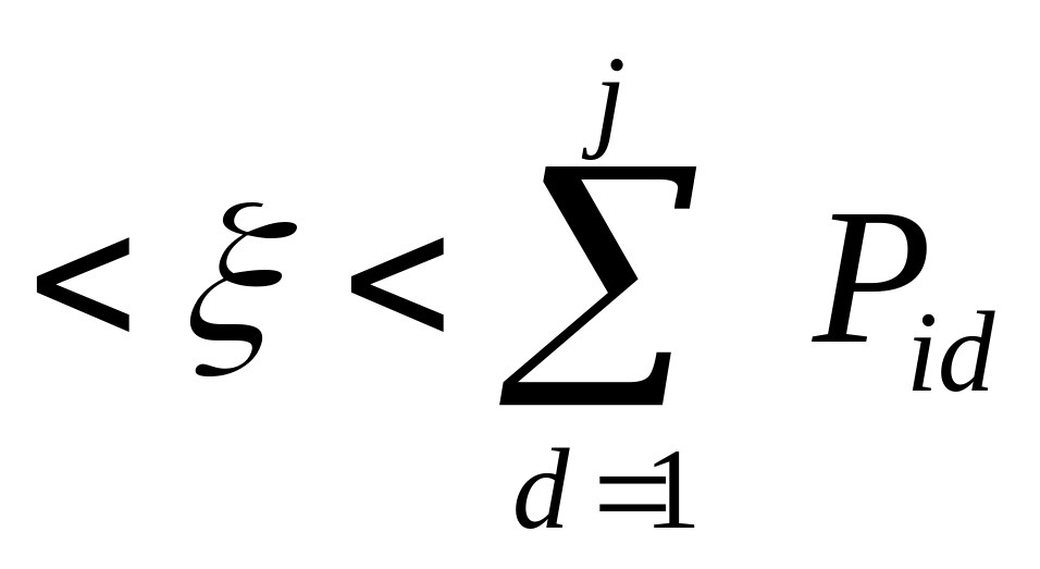 Если ( . = то модельное время увеличивается на величину в ячейку для заносится величина интервала до момента поступления следующего требования , с вероятностями , , разыгрывается номер узла, куда направляется следующее поступившее требование. Пусть, для примера это будет узел . Тогда в ячейку для