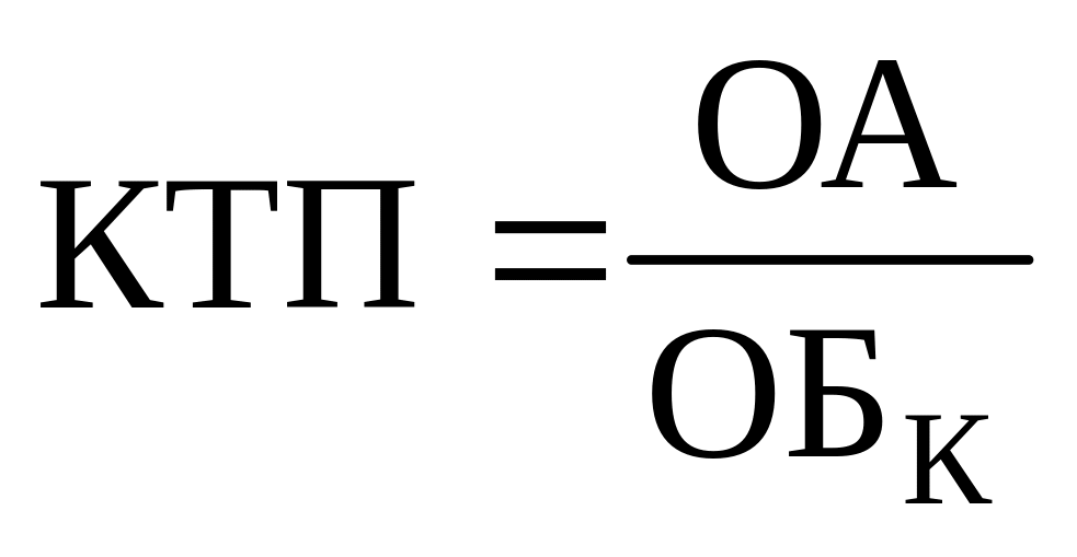 в) коэффициент текущей платежеспособности (КТП). Он показывает в какой степени вся задолженность по краткосрочным (текущим) финансовым обязательствам может быть удовлетворена за счет всех его текущих (оборотных) активов. Расчет этого показателя производится по формуле: