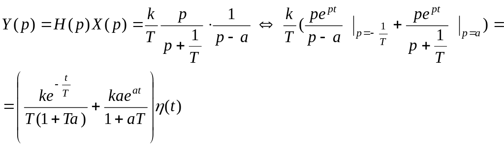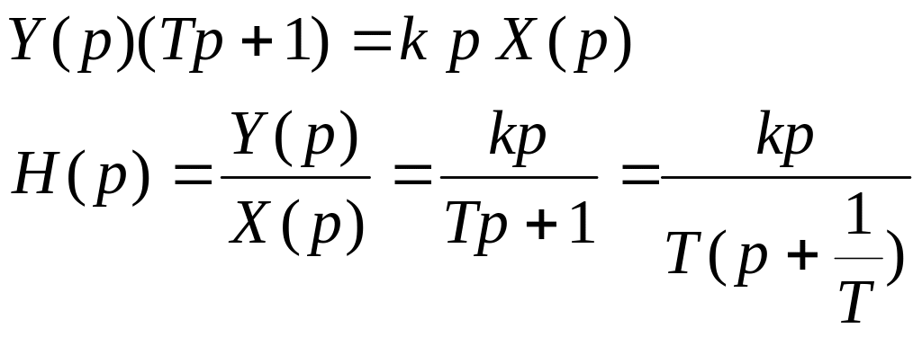 , переходя к изображениям Лапласа при нулевых начальных условиях, находим передаточную функцию: