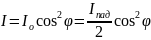 Если на систему поляризатор-анализатор падает естественный свет с интенсивностью Iпад, то закон Малюса можно записать в виде: