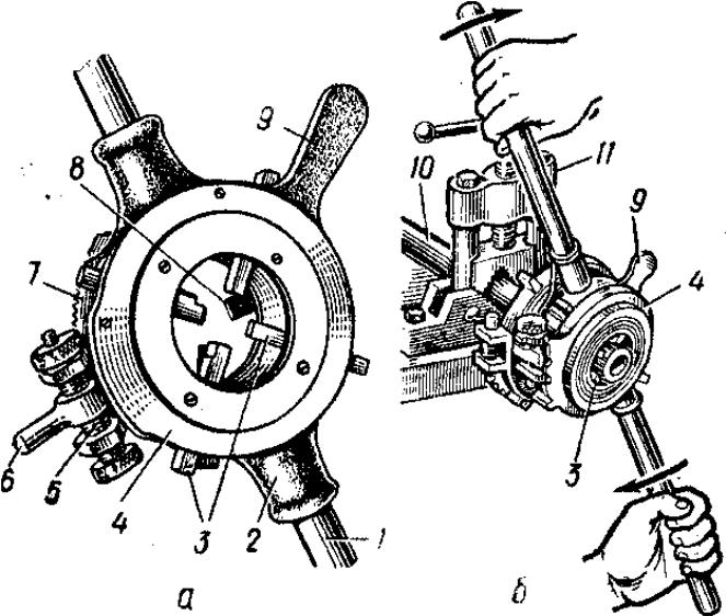 Крім чотирьох різьбових плашок 3 у корпусі 2 клупа встановлено