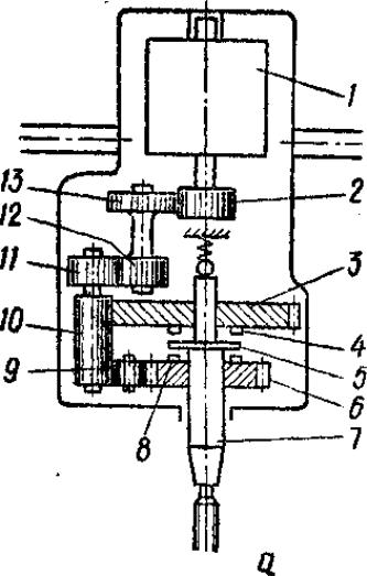10 і 9 передає обертання вільно насадженим зубчастим колесам 6 і З,
