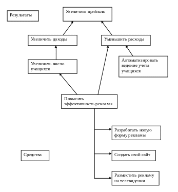 Рис. 2.7. «Дерево целей» с вариантами стратегий для коммерческого учебного центра