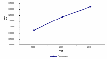 Для определения доли рынка по отдельным видам грузов необходимо знать, сколько за год в общем составлял грузооборот по всем МТП Украины по конкретным грузам. Так, в 2008 году грузооборот по металлу составил 25168,1 тыс.т., в 2009 – 24483,5 тыс.т., а в 2010 – 25382,6 тыс.т.. Грузооборот по руде составил в 2008 году – 12678,8 тыс.т., а в 2009 – 14465,6 тыс.т., в 2010 году 13554,2 тыс.т,