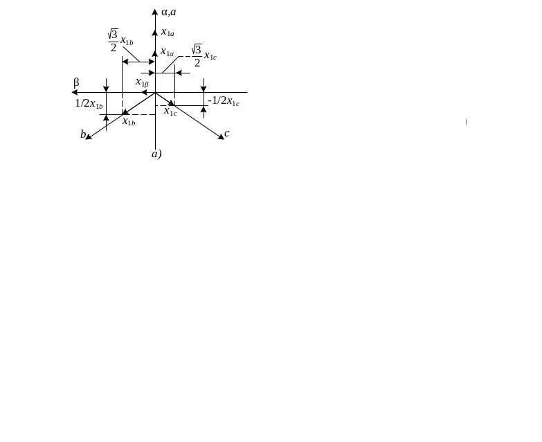 Математическое описание асинхронного двигателя записано для двухфазной модели машины. Реальные двигатели переменного тока чаще всего имеют трехфазную обмотку статора, поэтому возникает необходимость преобразования переменных трехфазной машины к переменным двухфазной модели и, наоборот. При этом, учтем, что один и тот же результирующий вектор МДС может быть создан как двухфазной, так и трехфазной обмоткой.