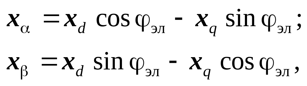 Для преобразования скалярных переменных записанных в неподвижной системе координат , в подвижную систему координат d, q и обратно (рис. 3.12) требуется использовать следующие формулы пересчета: