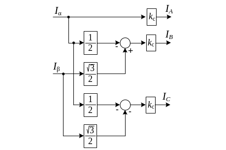 системы α, β в трехфазную А, В, С с согласующим коэффициентом kc