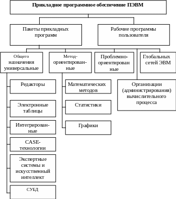 Прикладное программное обеспечение (рис.5.2) предназначено для разработки и выполнения конкретных задач (приложений) пользователя. Оно работает под управлением системного программного обеспечения ПЭВМ.