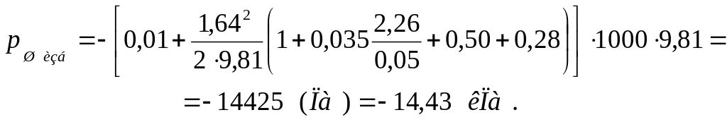 После подстановки числовых данных в выражение (4.28) найдем избыточное давление в сечении 2-2 трубы: