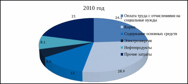 За рассматриваемый период трудоемкость при производстве молока в хозяйстве существенно снизилась. Так в 2010 г. затраты труда на 1 ц молока составили 4,6 чел. – ч, что на 37,8 % ниже уровня 2006 года. При этом важно подчеркнуть, что снижение трудоемкости происходило ежегодно, что в свою очередь говорит о росте производительности труда в изучаемом хозяйстве.